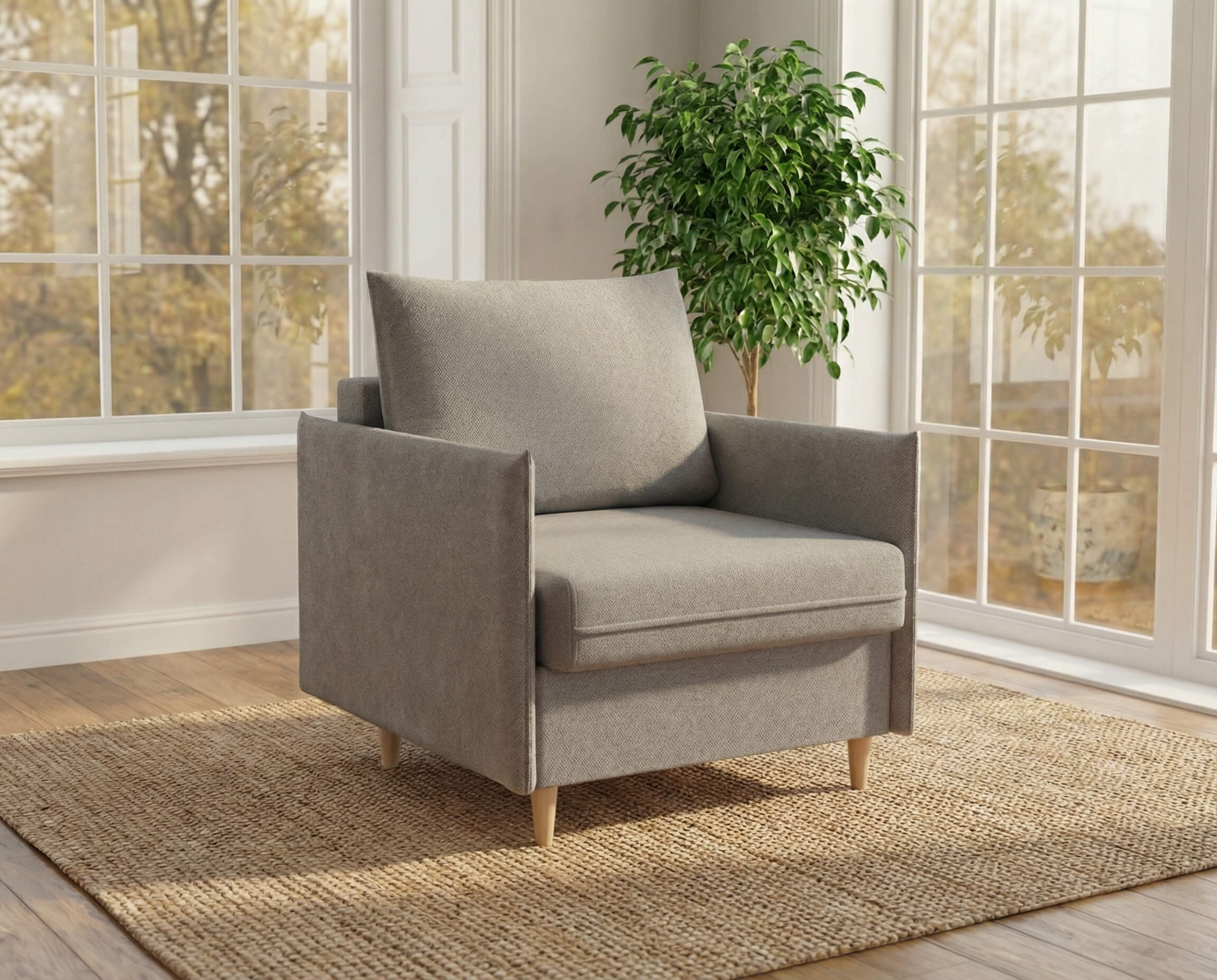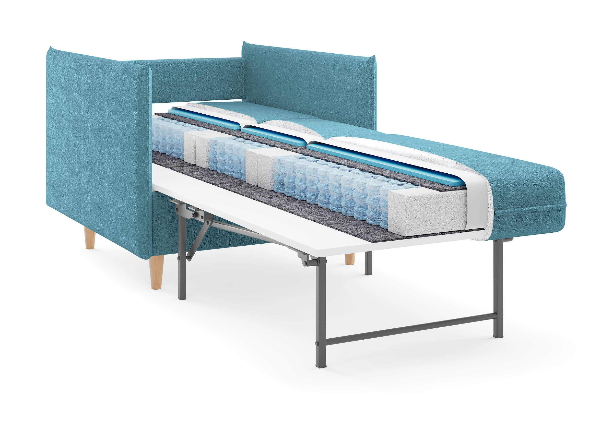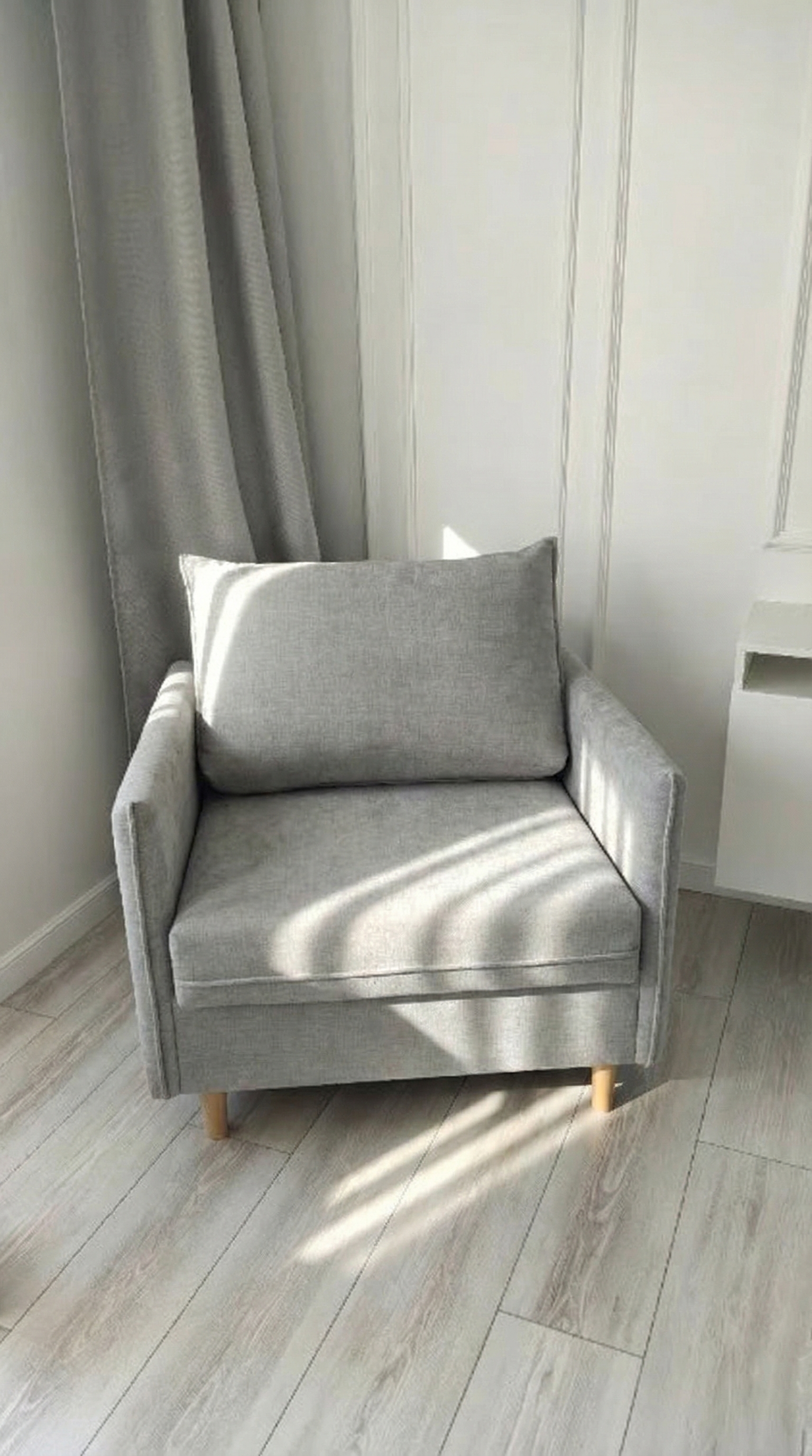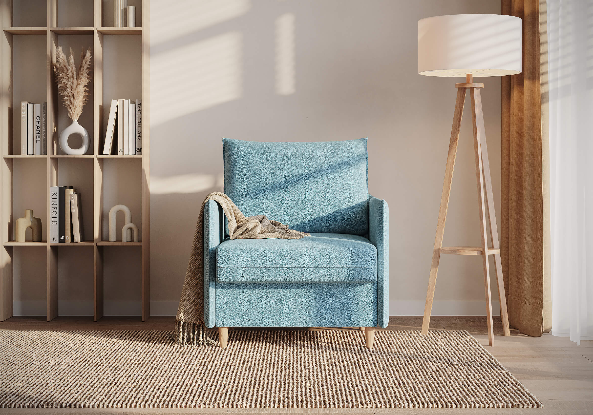 Идеальный выбор для тех, кто ценит эстетику и функциональность в равной степени. Его лаконичный дизайн гармонично впишется в любой современный интерьер — как в минимализм, так и в скандинавский стиль. Благодаря трёхсекционному механизму трансформации (МТД), кресло легко превращается в полноценное спальное место. Узкие подлокотники не занимают лишнего пространства, позволяя креслу легко вписаться даже в небольшие комнаты. Высокие опоры придают изделию лёгкость и изящество, облегчая уборку и позволяя роботу-пылесосу беспрепятственно двигаться под ним.